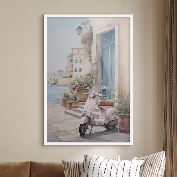 Poster Een scooter tegen de achtergrond van een huis Nr f46065