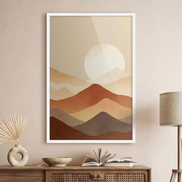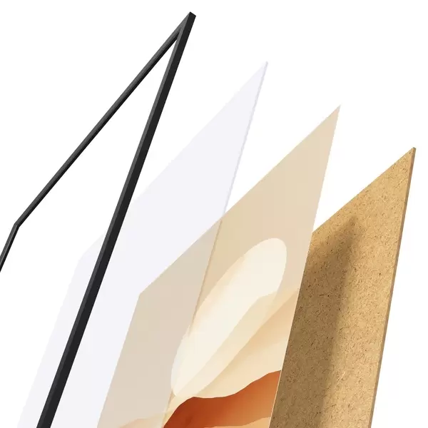 De poster bestaat uit een frame, plexiglas, geprinte afbeelding en spaanplaat achterkant. De poster kan meteen aan de muur worden gehangen dankzij de bevestigingen op de achterkant.