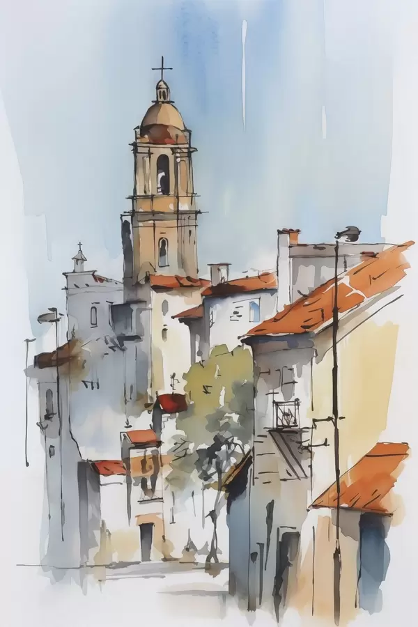 Poster Stadsgezicht imitatie aquarel Nr f46120
