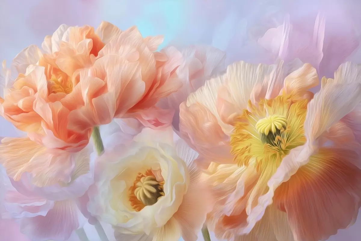 Poster Delicate bloemen in pasteltinten met zachte verlichting Nr f46160