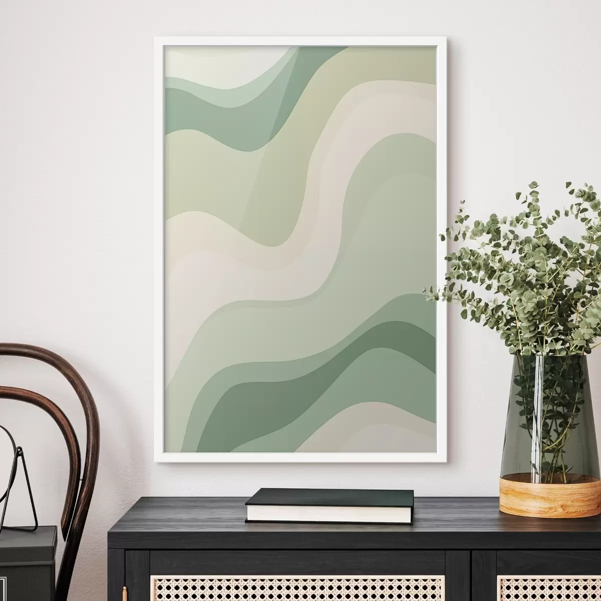 De poster bestaat uit een frame, plexiglas, geprinte afbeelding en spaanplaat achterkant. De poster kan meteen aan de muur worden gehangen dankzij de bevestigingen op de achterkant.