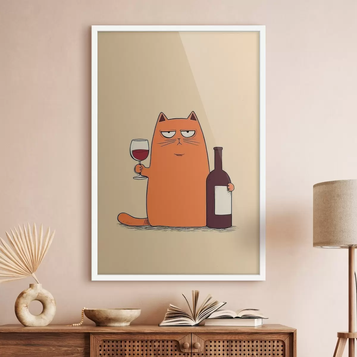 Poster Kat met wijn f46250