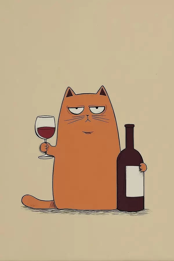 Poster Kat met wijn Nr f46250