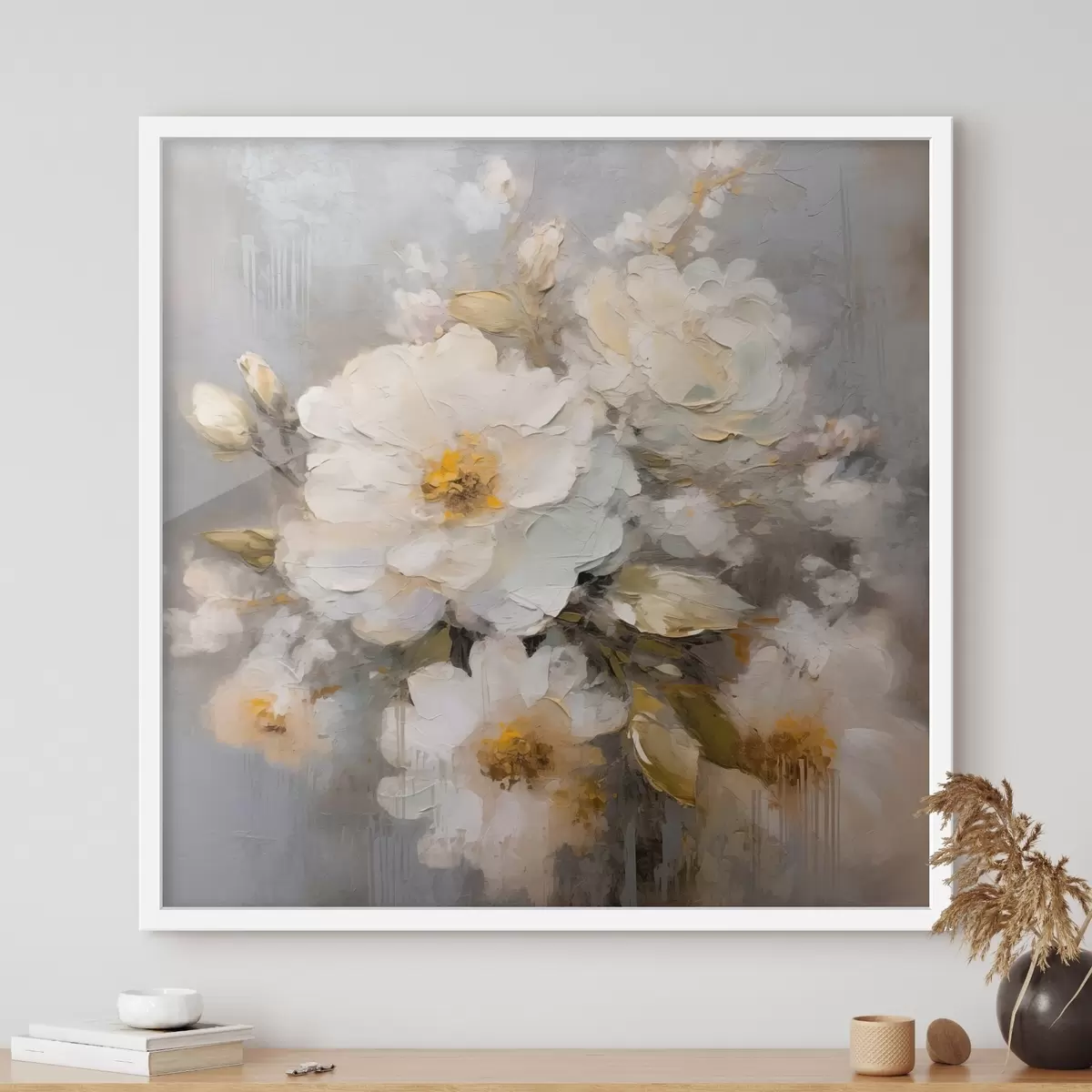 Je kunt het schilderij ophangen aan schroeven. Hiervoor leveren we bevestigingen bij onze foto's, zodat je de foto gemakkelijk kunt ophangen.