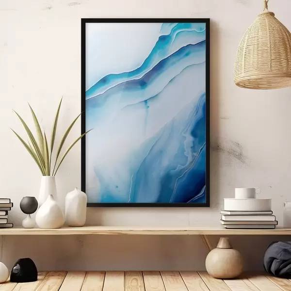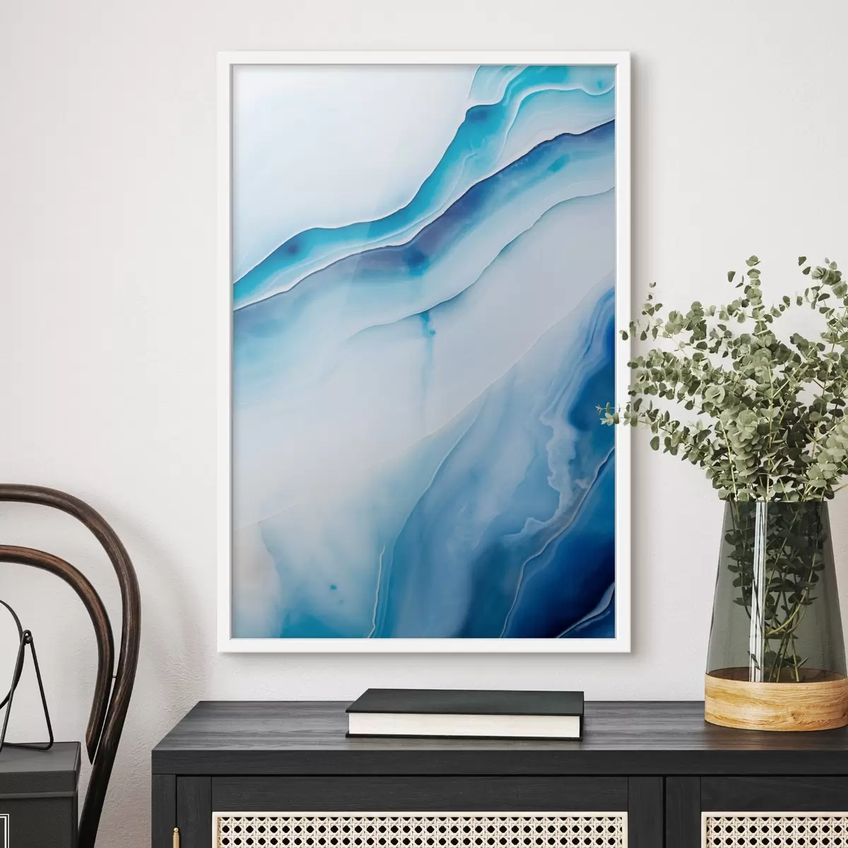 Poster Abstracte blauw-witte agaatprint, wervelende lijnen en kleurverlopen, gladde textuur, moderne kunst, minimalistisch f46291
