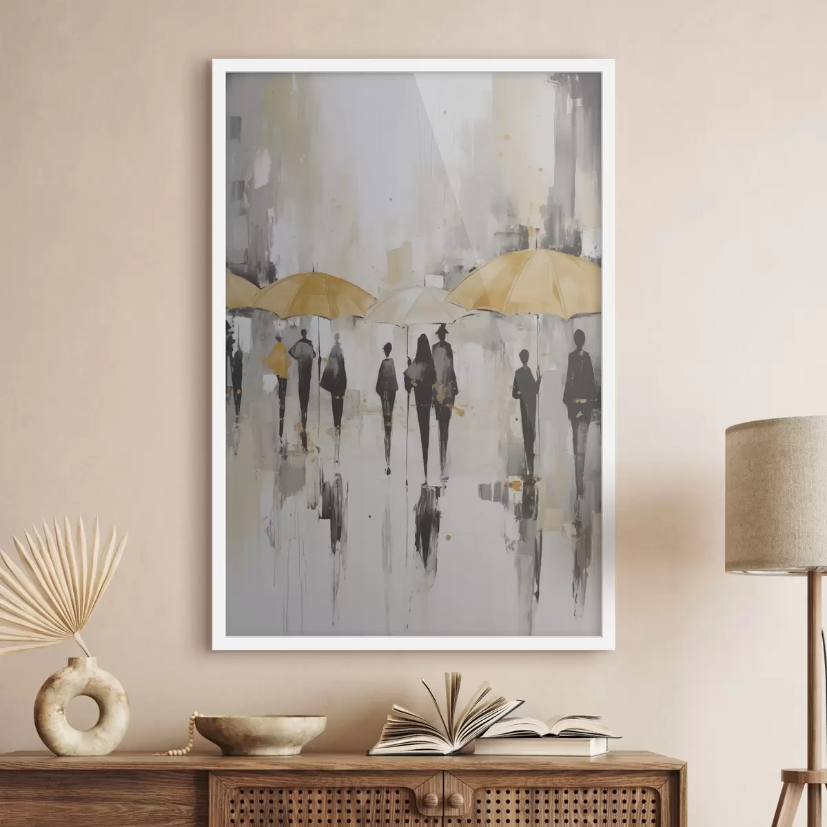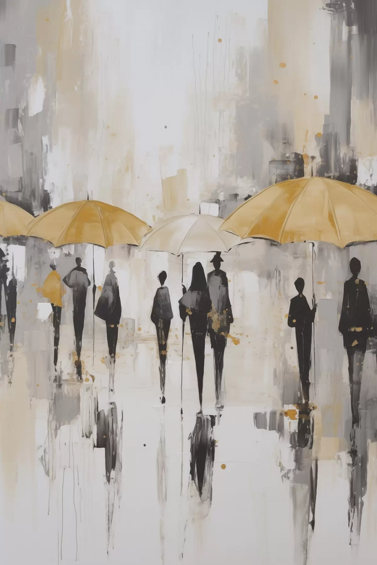 Poster Abstractie van mensen met paraplu's Nr f46304