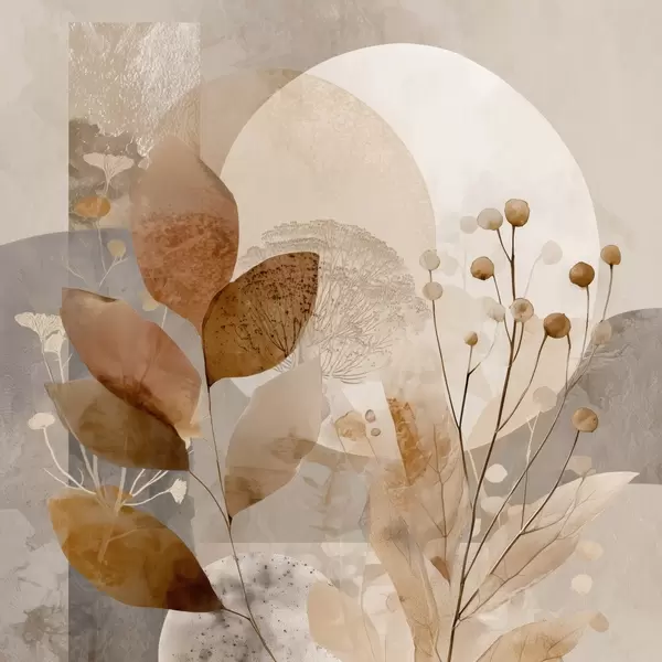 Poster Bloemenpatroon in beige en bruin Nr f46308