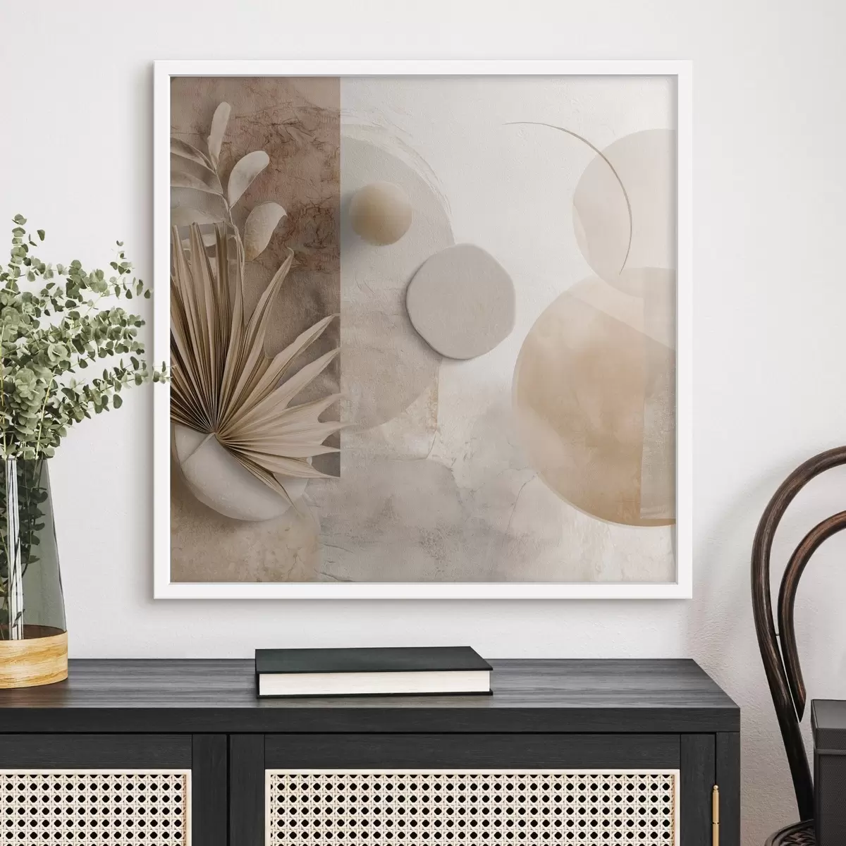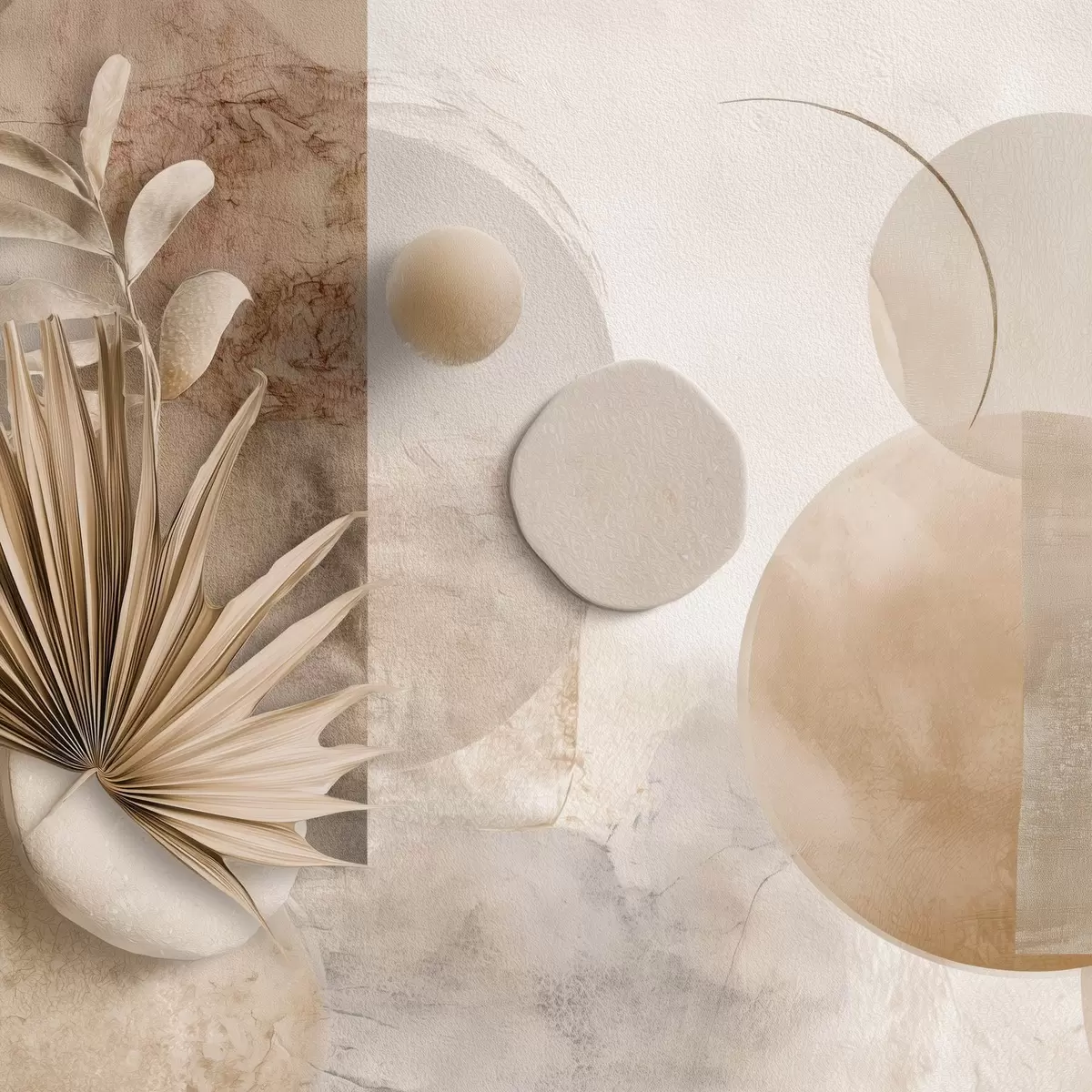 Poster Gedroogde palmbladeren en 3D-cirkels in beige tinten Nr f46310