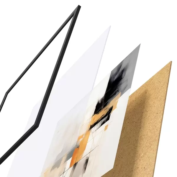 De poster bestaat uit een frame, plexiglas, geprinte afbeelding en spaanplaat achterkant. De poster kan meteen aan de muur worden gehangen dankzij de bevestigingen op de achterkant.