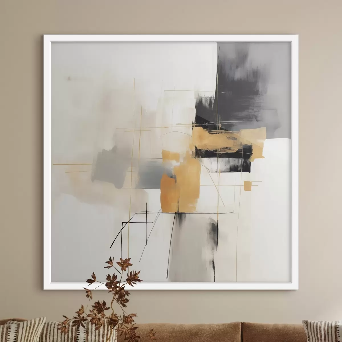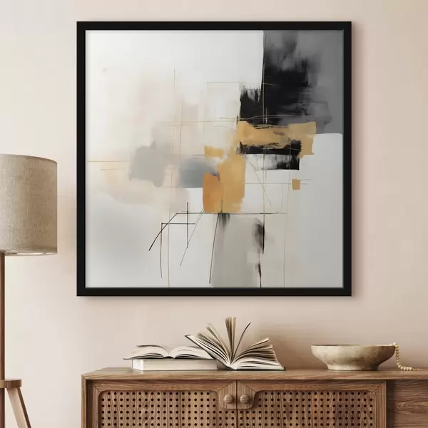 Poster Moderne schilderkunst, beige, perzik en grafietaccenten Nr f46323