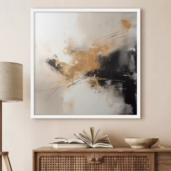 Poster Oranje en zwarte streken, moderne abstractie f46327