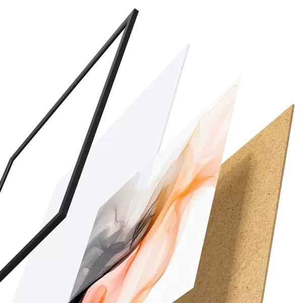 De poster bestaat uit een frame, plexiglas, geprinte afbeelding en spaanplaat achterkant. De poster kan meteen aan de muur worden gehangen dankzij de bevestigingen op de achterkant.