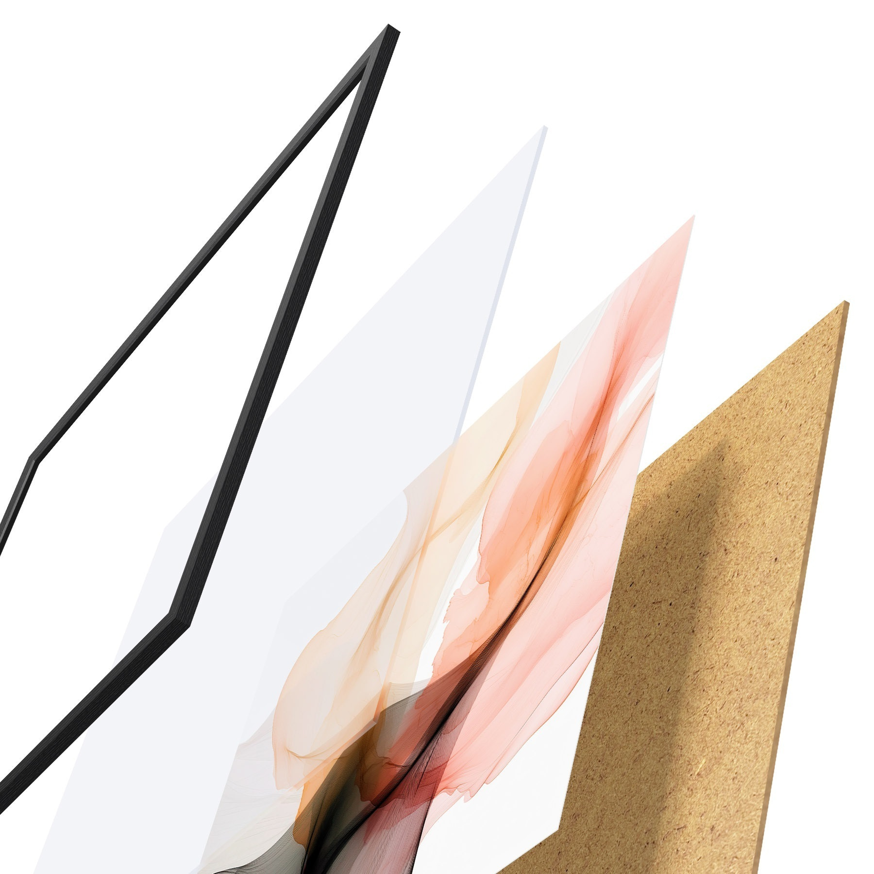 De poster bestaat uit een frame, plexiglas, geprinte afbeelding en spaanplaat achterkant. De poster kan meteen aan de muur worden gehangen dankzij de bevestigingen op de achterkant.