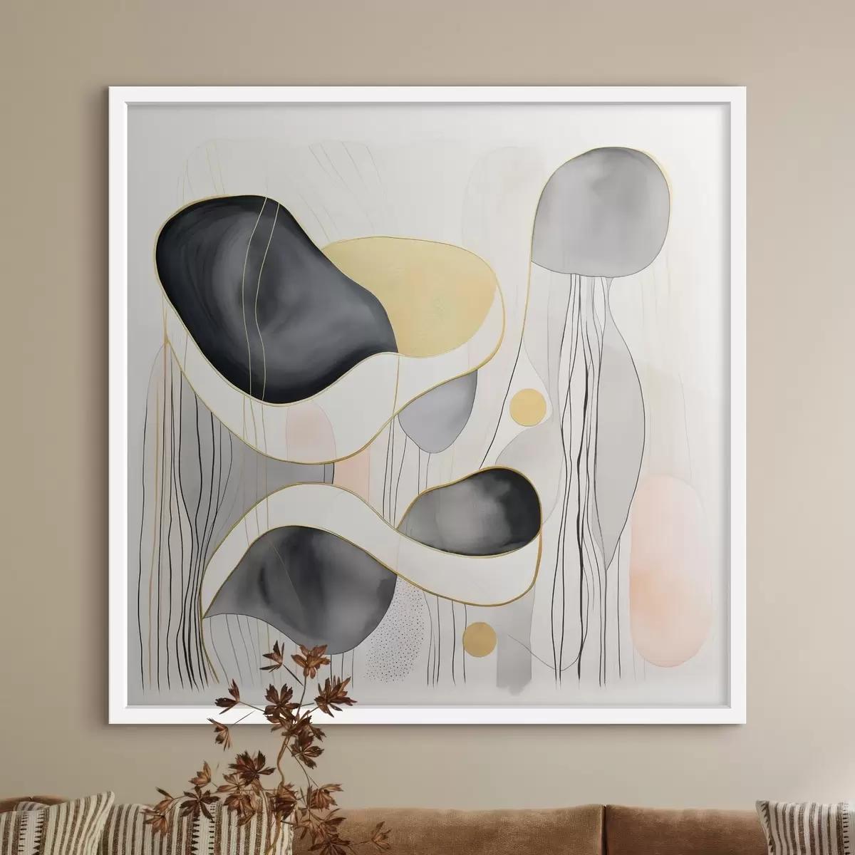 Poster Neutrale samenstelling, grijze en zandkleurige vlekken in moderne stijl Nr f46334