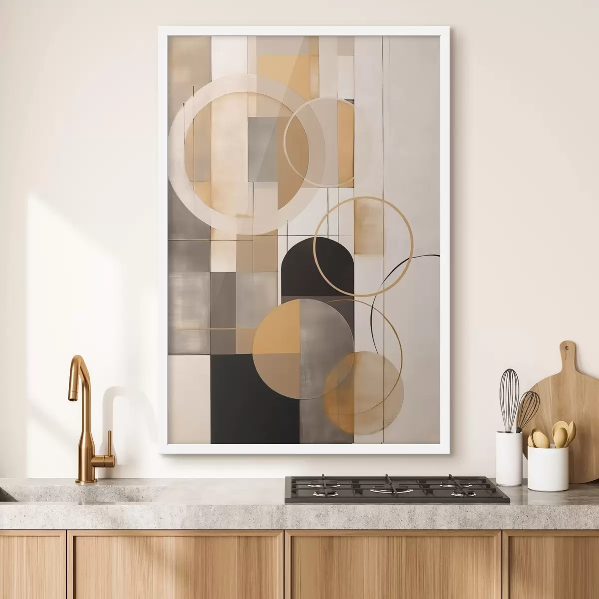De poster bestaat uit een frame, plexiglas, geprinte afbeelding en spaanplaat achterkant. De poster kan meteen aan de muur worden gehangen dankzij de bevestigingen op de achterkant.