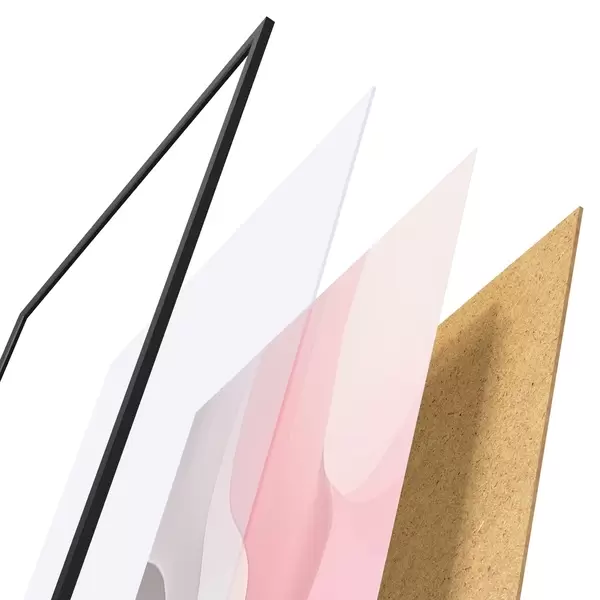 De poster bestaat uit een frame, plexiglas, geprinte afbeelding en spaanplaat achterkant. De poster kan meteen aan de muur worden gehangen dankzij de bevestigingen op de achterkant.