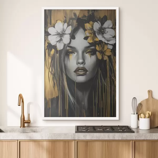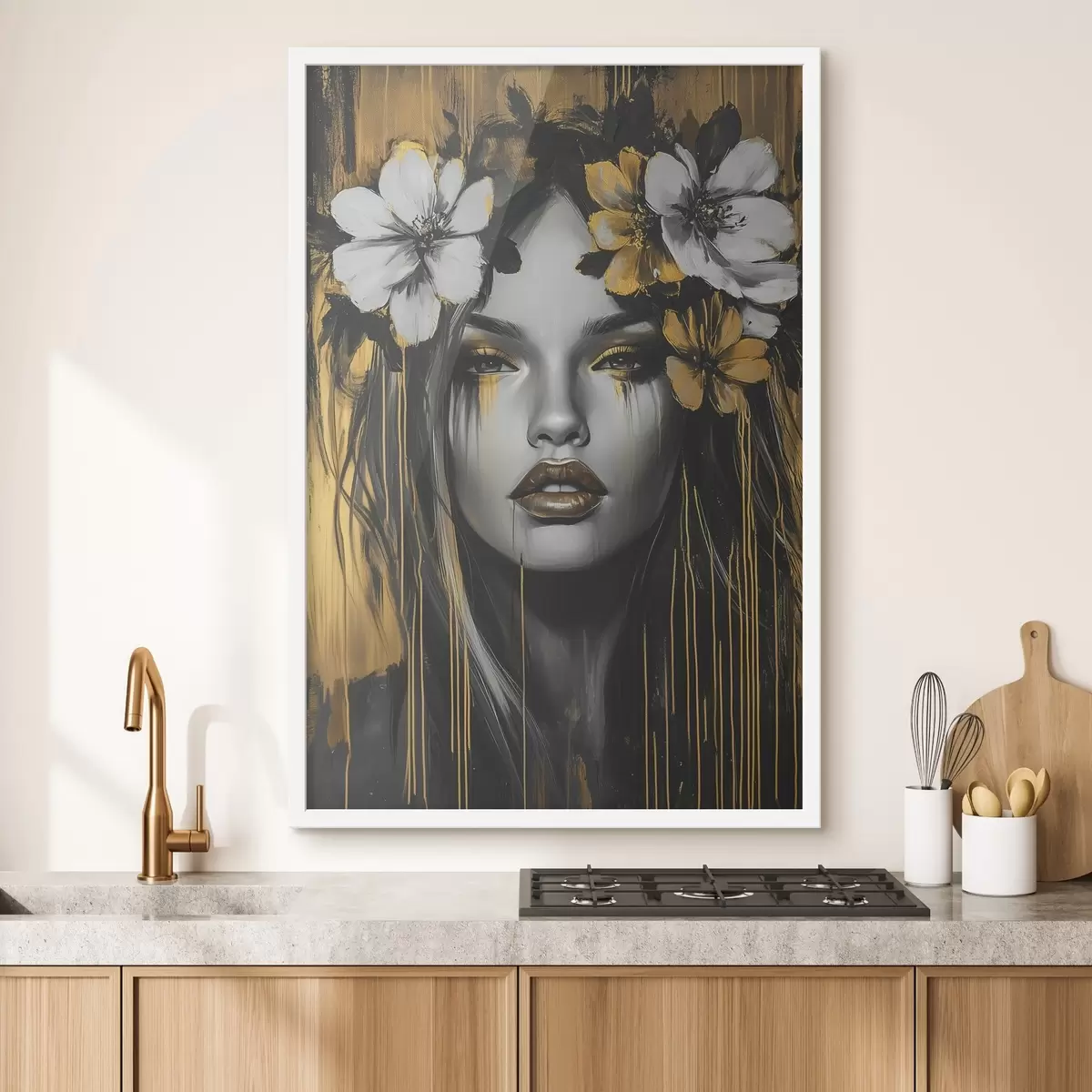 Poster Abstract portret van een vrouw met bloemen Nr f46454