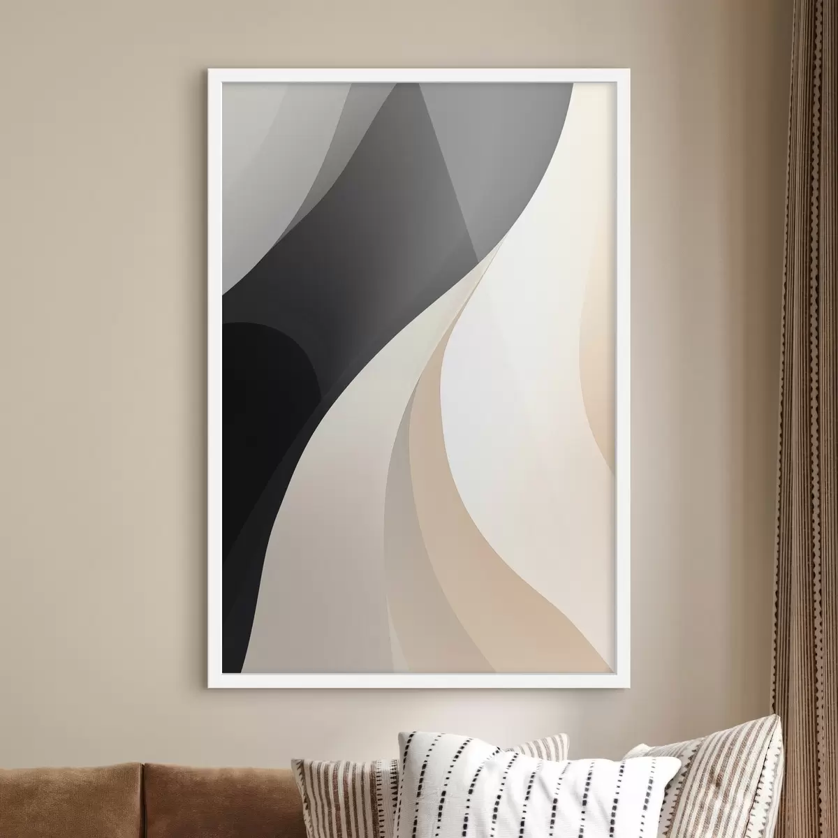Poster Strakke overlappende rondingen in antraciet, ivoor en zand Nr f46493