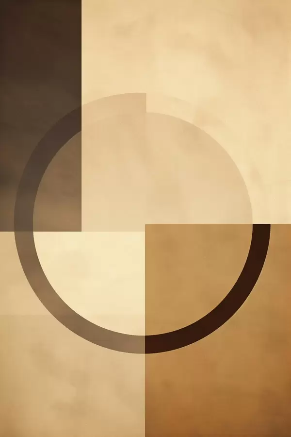 Poster Gedempte vierkanten met doorschijnende ring, warm aardetintenpalet Nr f46498