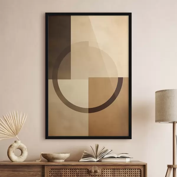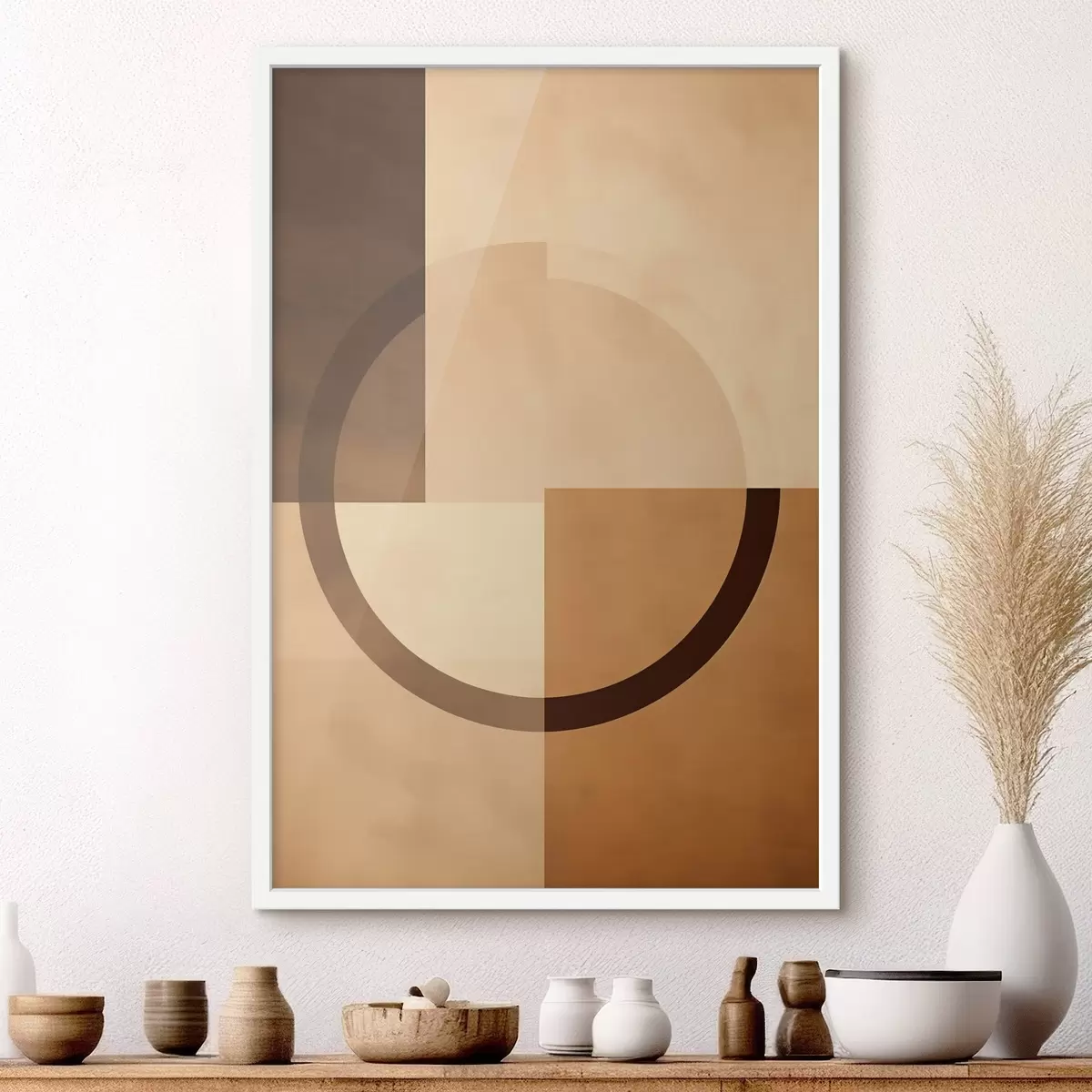 Poster Gedempte vierkanten met doorschijnende ring, warm aardetintenpalet f46498