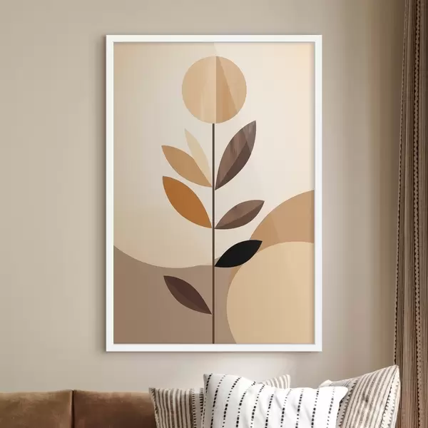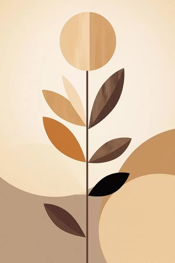 Poster Gestileerde bloem met geometrische bladeren in warme tinten Nr f46500
