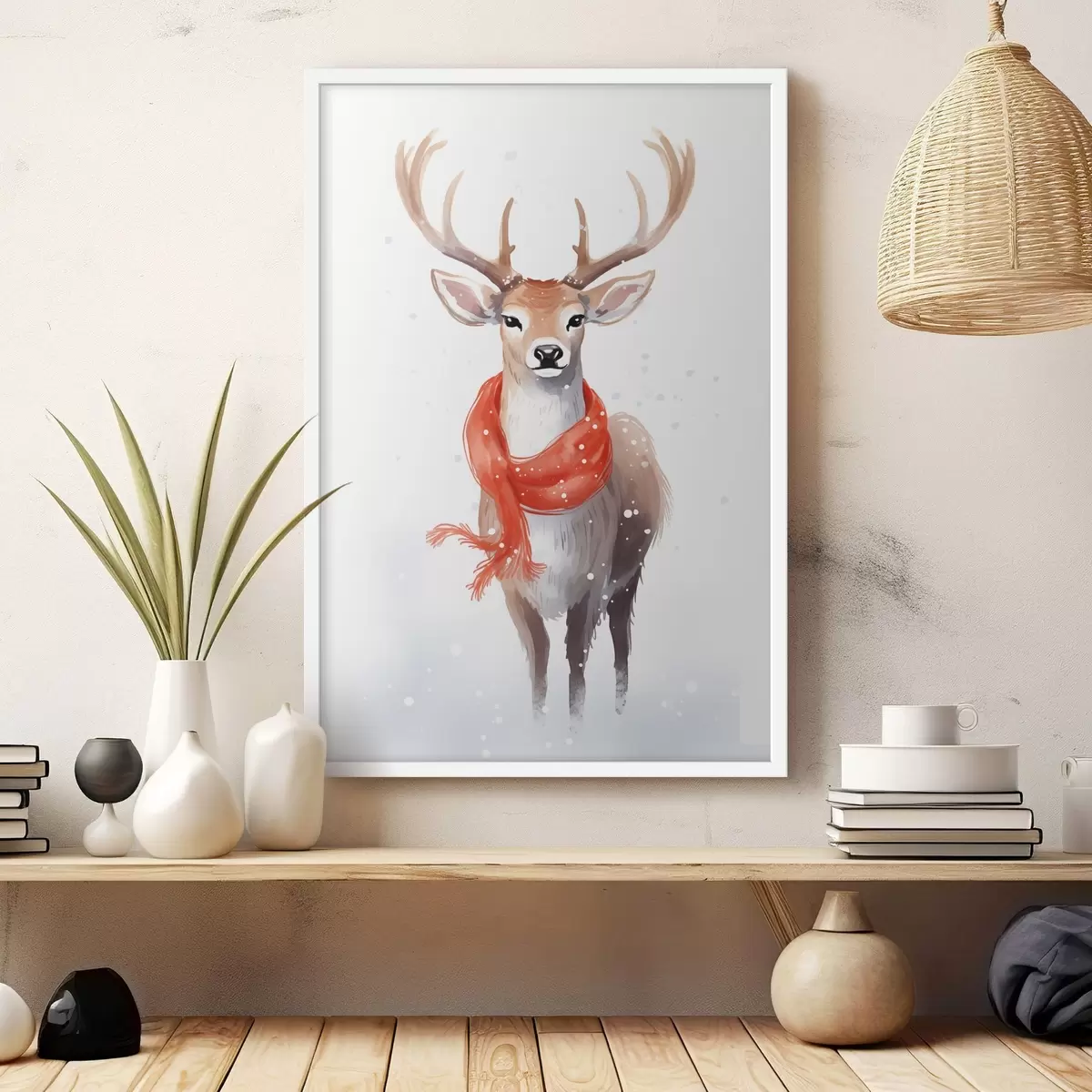 Poster Herten met een sjaal f46594