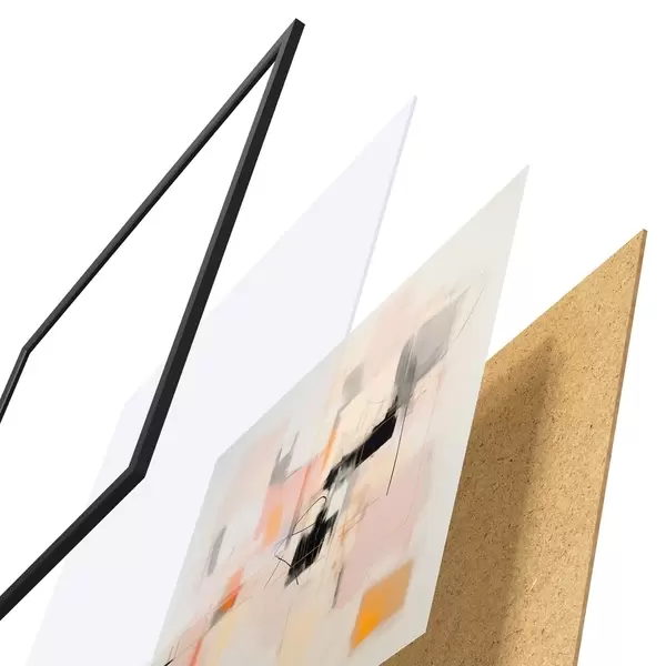 De poster bestaat uit een frame, plexiglas, geprinte afbeelding en spaanplaat achterkant. De poster kan meteen aan de muur worden gehangen dankzij de bevestigingen op de achterkant.