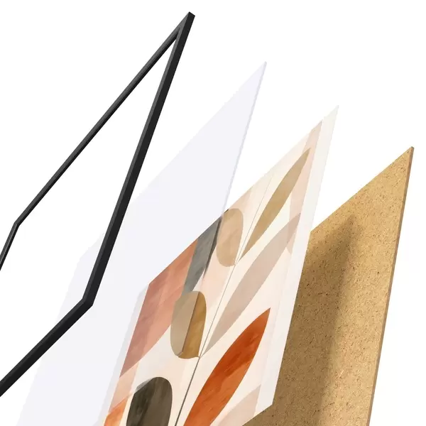 De poster bestaat uit een frame, plexiglas, geprinte afbeelding en spaanplaat achterkant. De poster kan meteen aan de muur worden gehangen dankzij de bevestigingen op de achterkant.