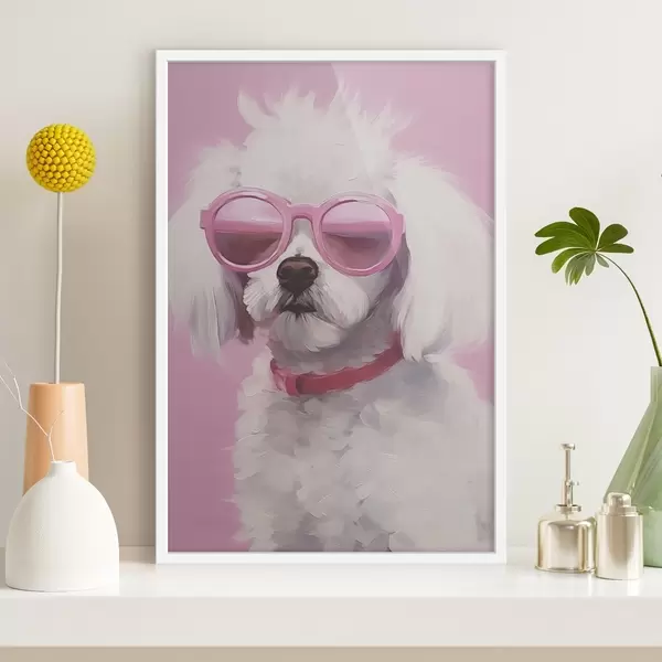Poster Een kleine hond met een bril is een imitatie van een schilderij. Nr f46722