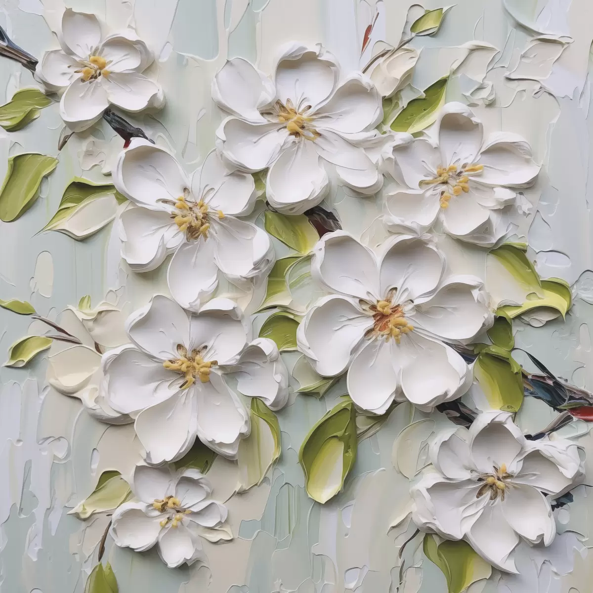 Het schilderij kan voorzichtig worden schoongeveegd met een droge zachte doek of spons; het wordt niet aanbevolen om natte producten te gebruiken. Het gebruik van een vochtige spons is alleen toegestaan als het schilderij gevernist is.