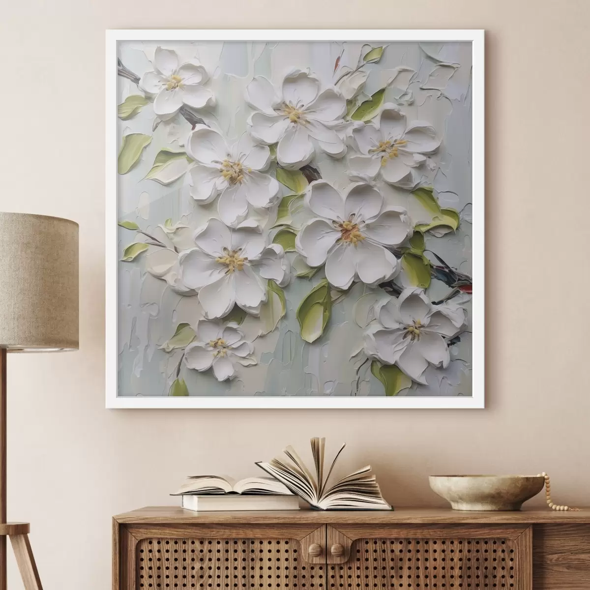 Je kunt het schilderij ophangen aan schroeven. Hiervoor leveren we bevestigingen bij onze foto's, zodat je de foto gemakkelijk kunt ophangen.