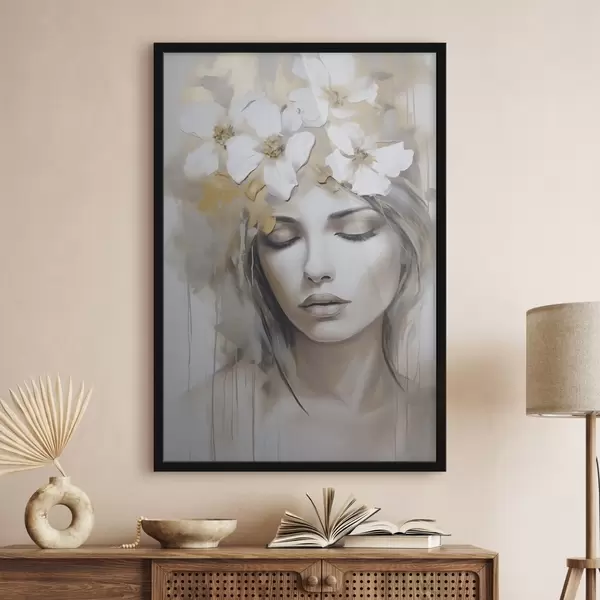 Poster Abstract portret van een meisje met bloemen, imitatie van een schilderij Nr f46756