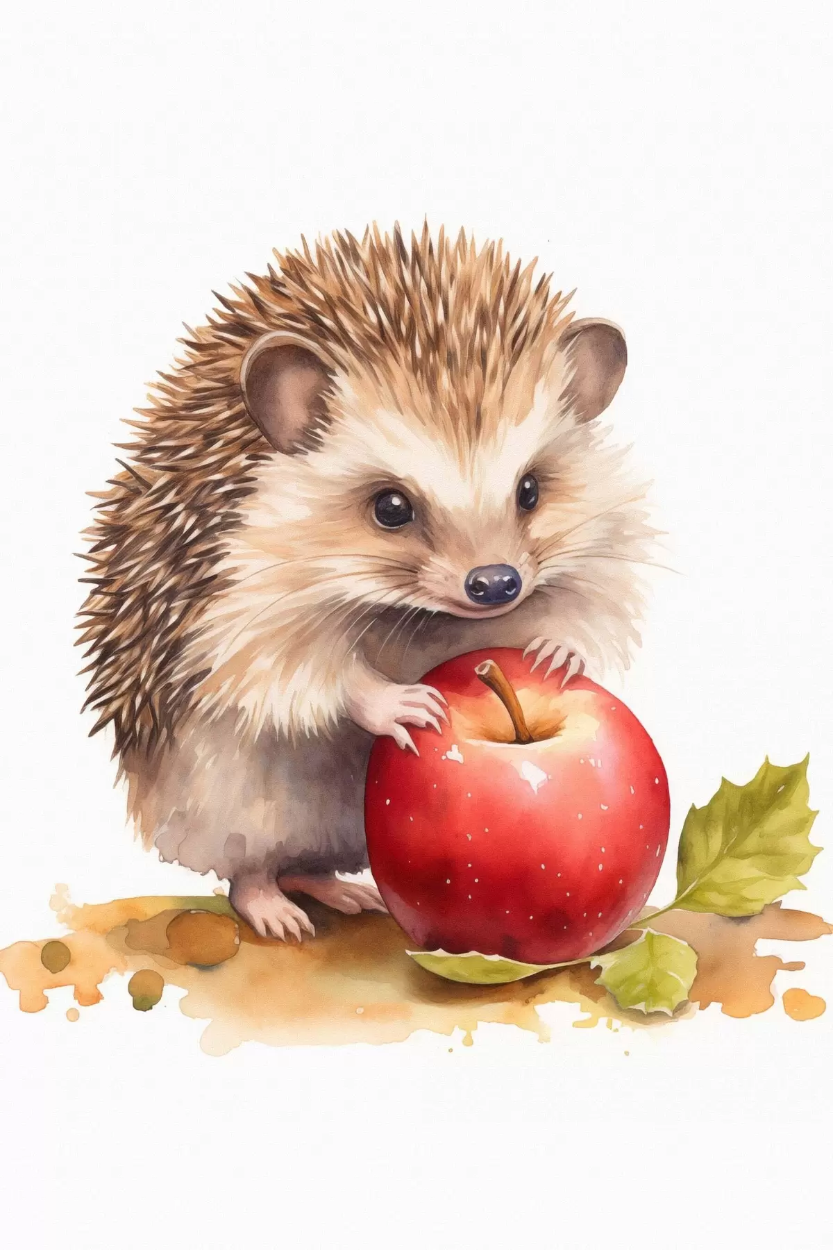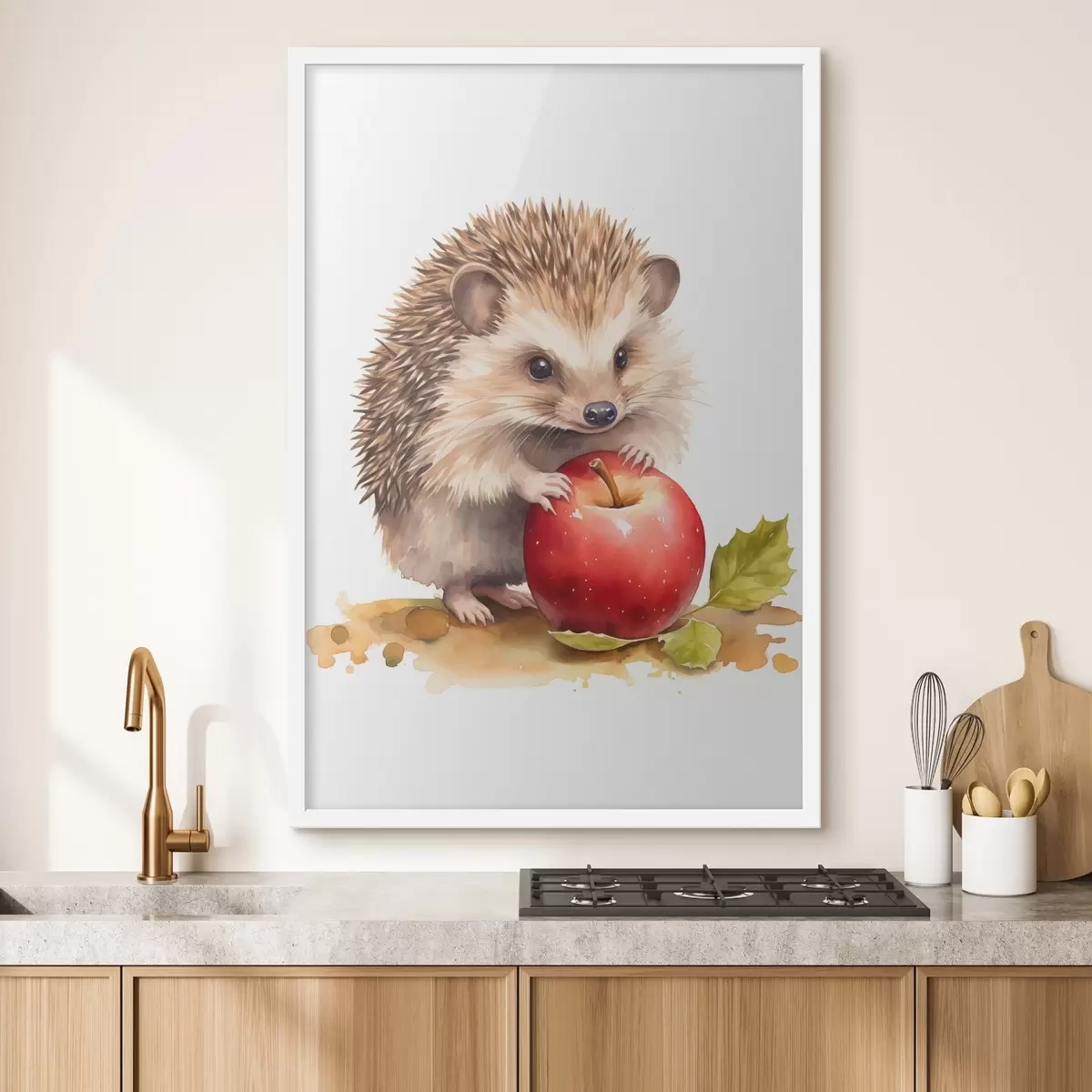 Poster Egel en appel, imitatie-aquarel Nr f46769
