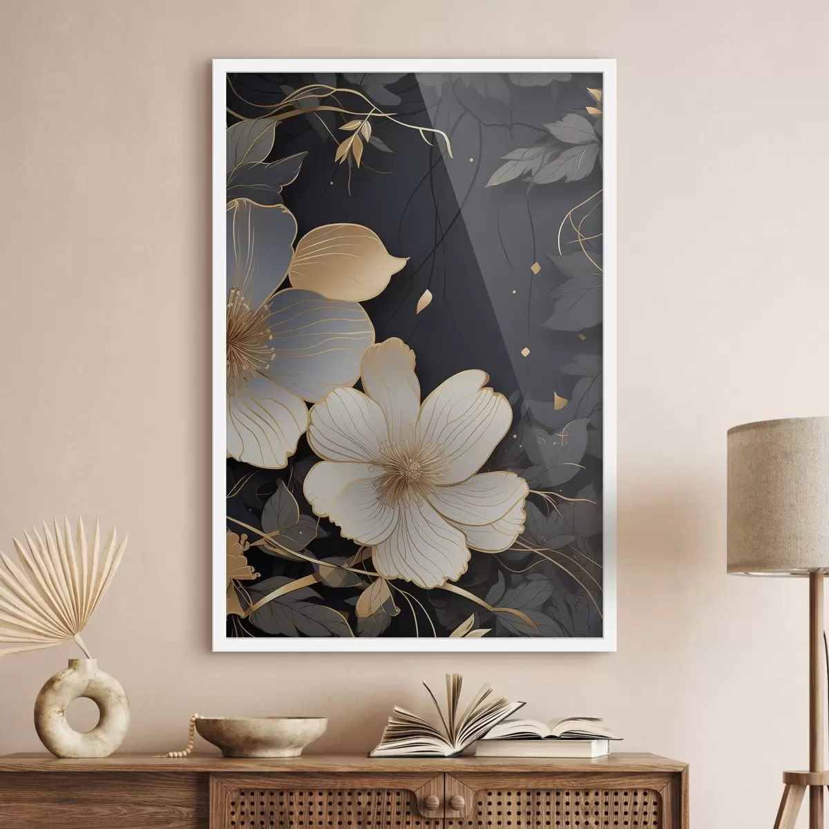 Poster Grote bloemen op een donkere achtergrond Nr f46885