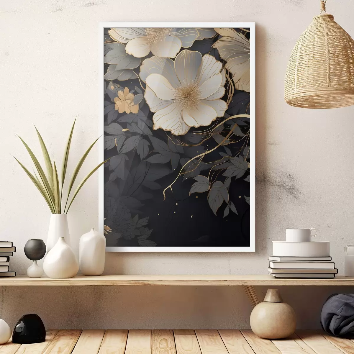 Poster Abstracte bloemen op een donkere achtergrond Nr f46886