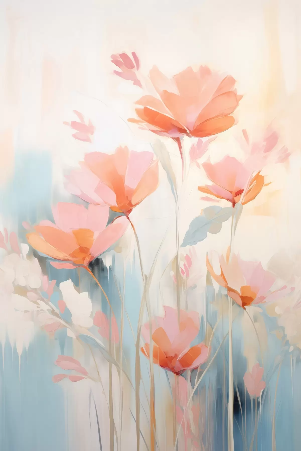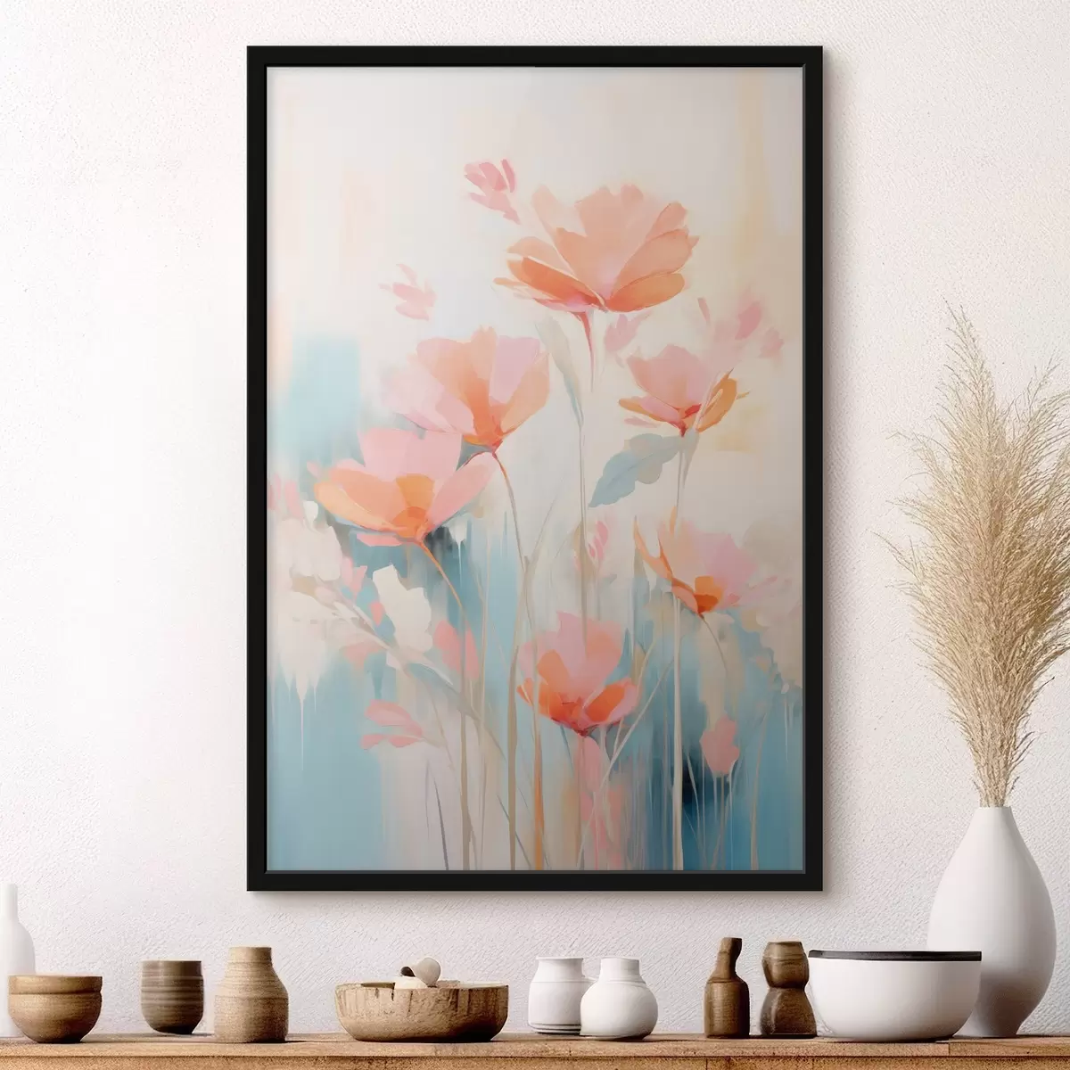 Poster Pastelkleurige bloemencompositie in een eigentijdse schilderstijl Nr f46930