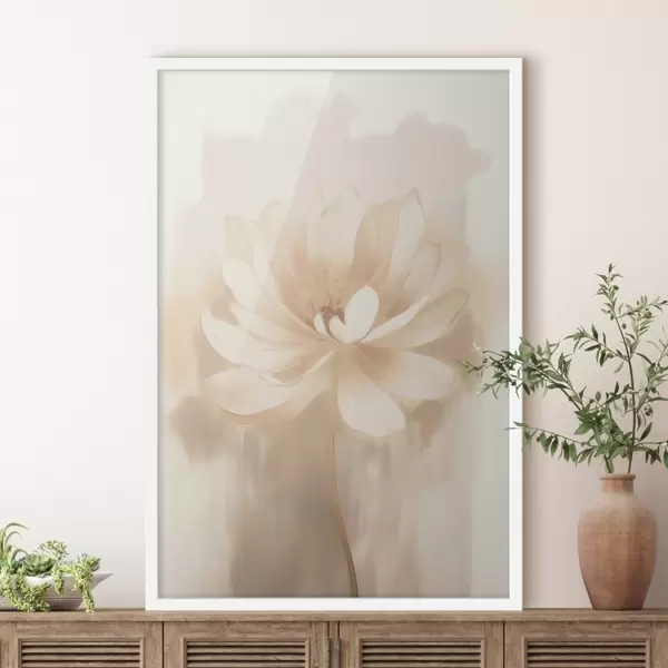 Poster Lotus met delicate schaduwen en een wazige achtergrond in een artistieke posterstijl f46937