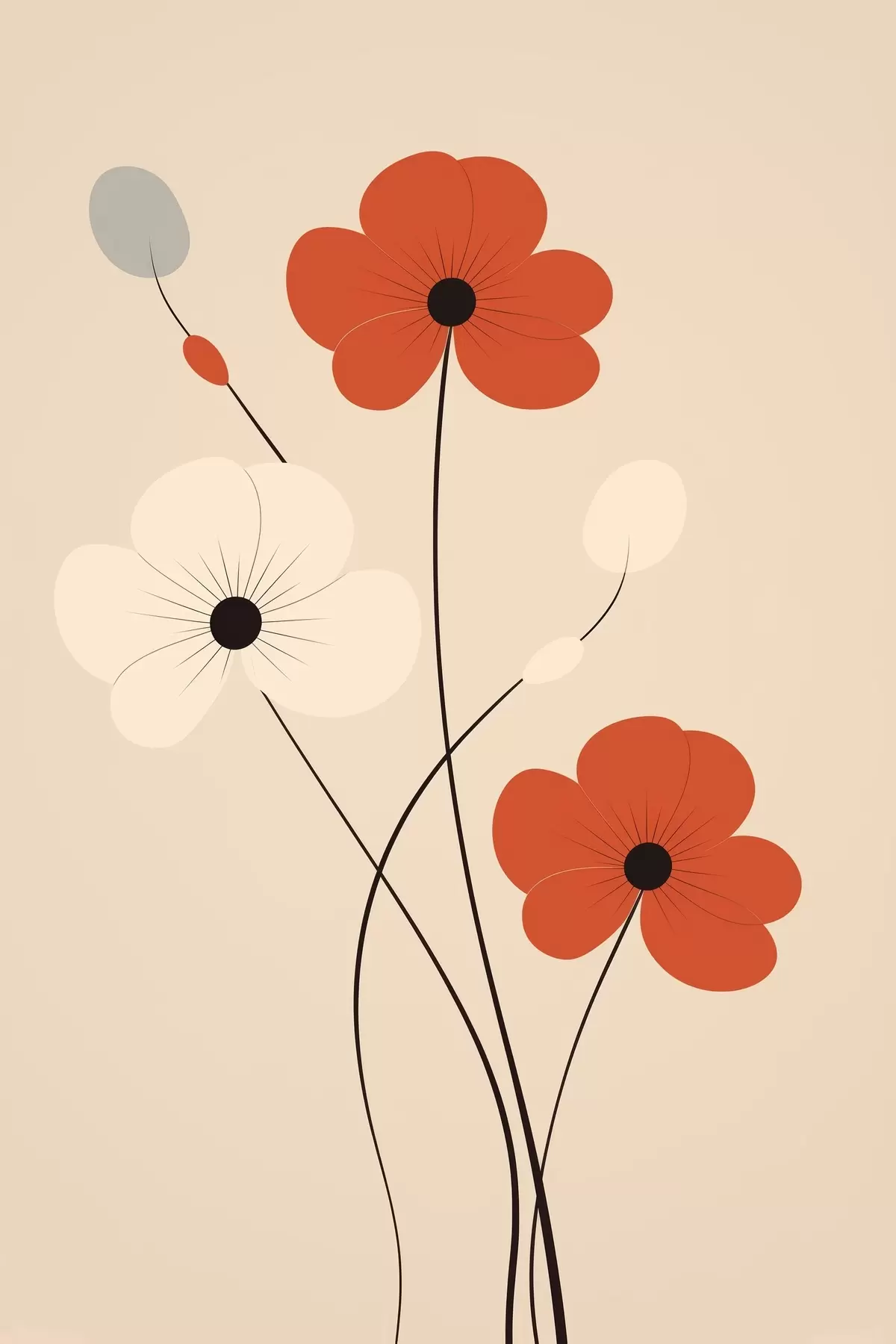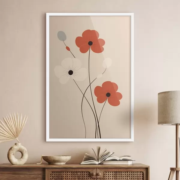 Poster Abstracte compositie met dunne stengels en eenvoudige vormen in een minimalistische stijl Nr f46943
