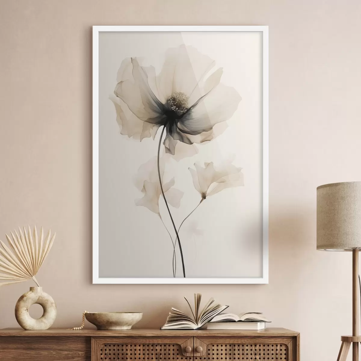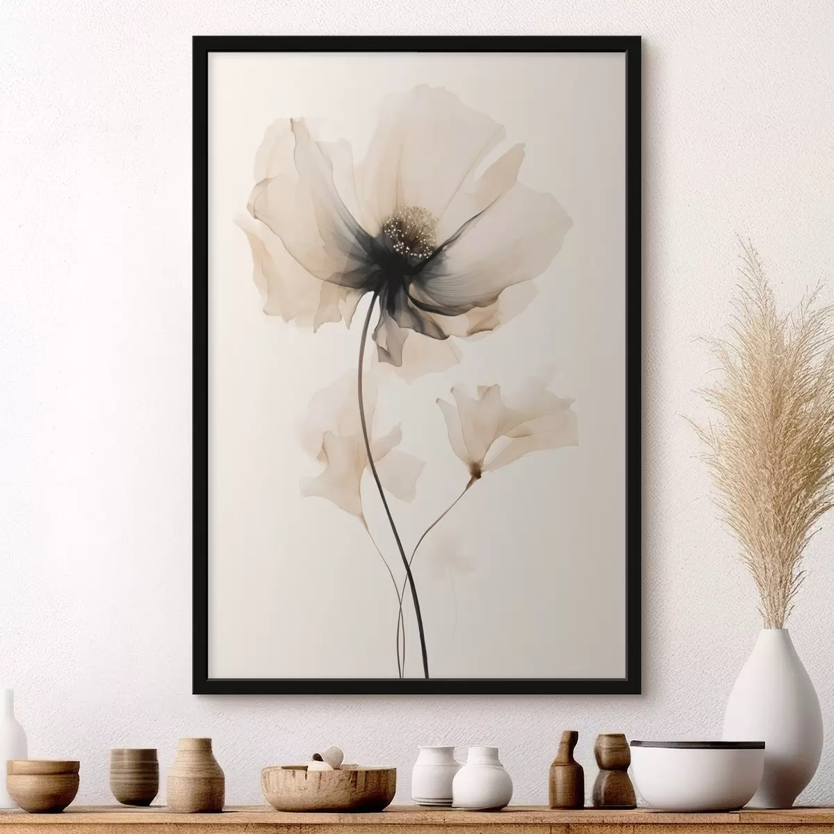 Poster Delicate, semi-transparante bloem met een donker hart in minimalistische stijl Nr f46944