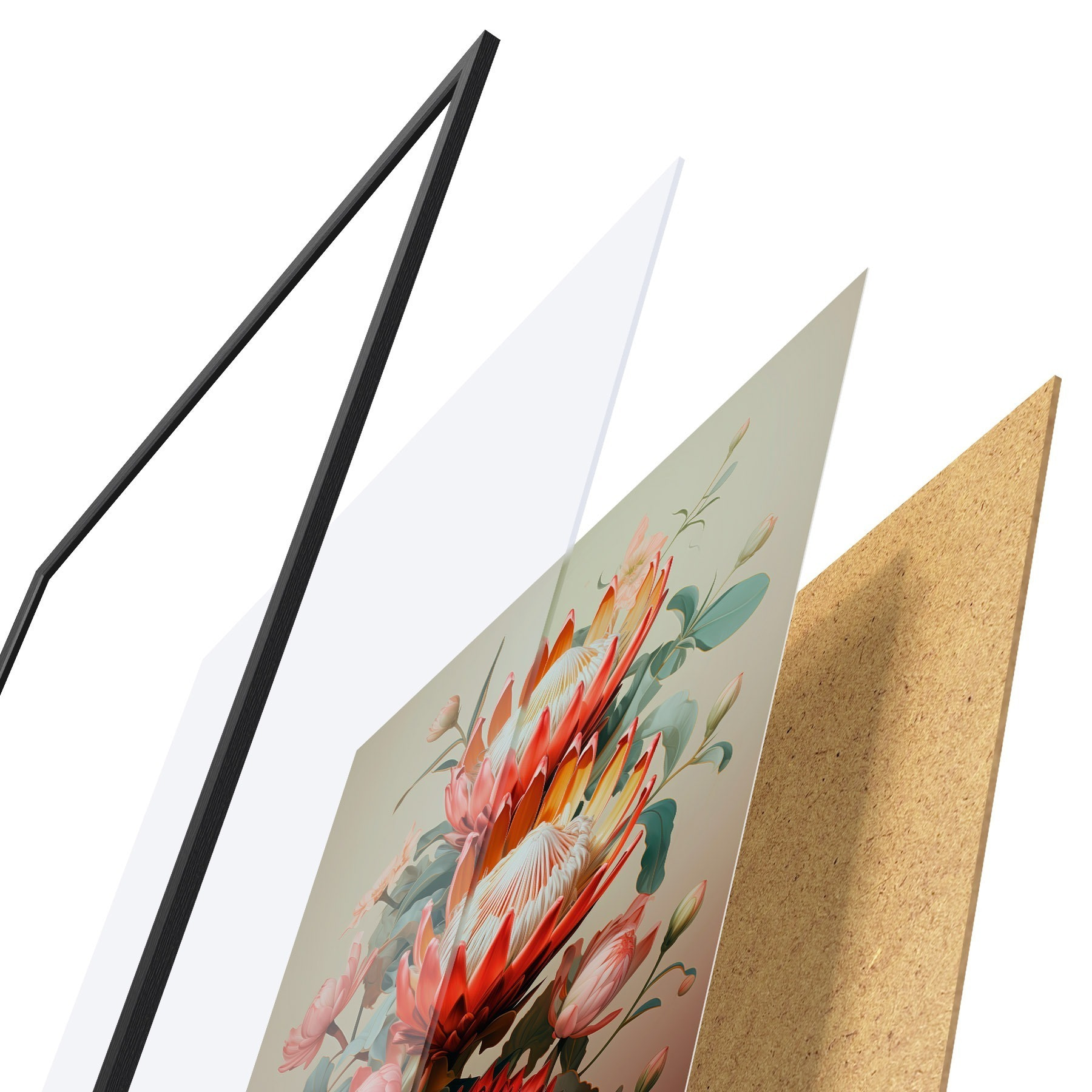 Poster Compositie met grote protea's in een moderne digitale schilderachtige illustratiestijl Nr f46947
