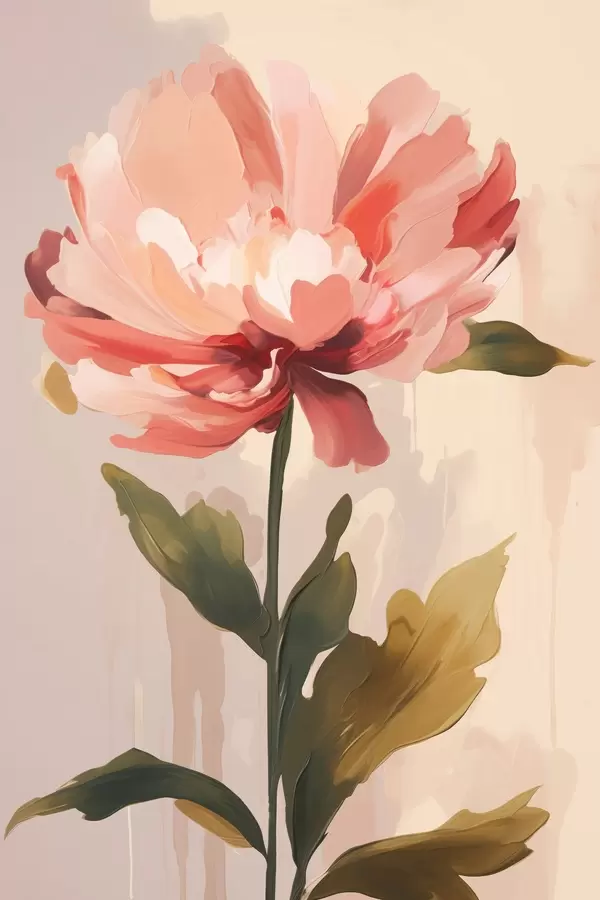 Poster Pioenroos met koraalroze bloemblaadjes in een moderne illustratiestijl Nr f46948