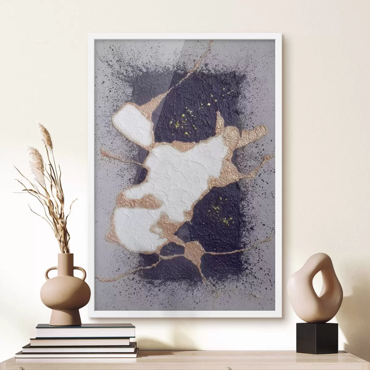 Poster Abstract in paarse en beige tinten met een volumetrisch textuureffect f46952