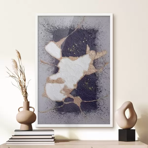 Poster Abstract in paarse en beige tinten met een volumetrisch textuureffect Nr f46952