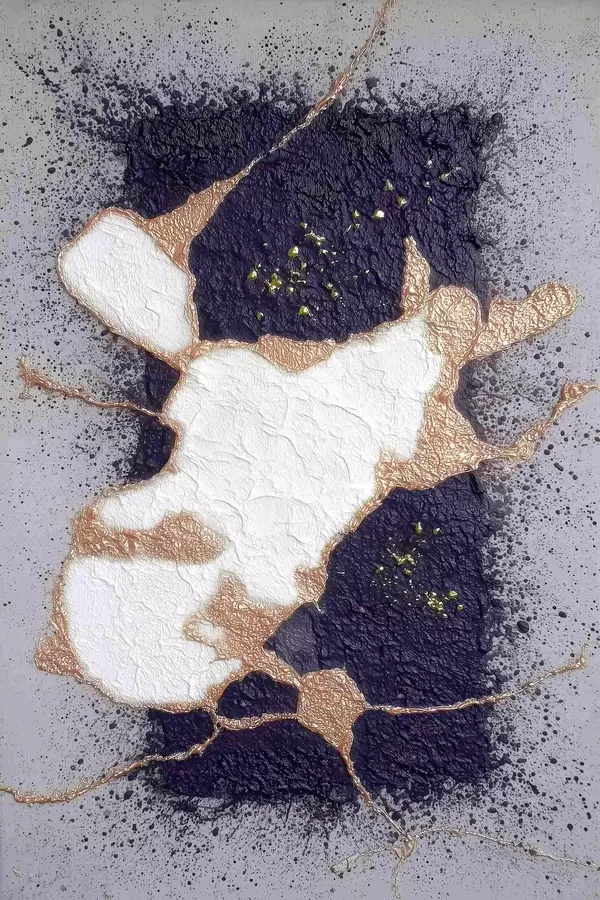 Poster Abstract in paarse en beige tinten met een volumetrisch textuureffect Nr f46952