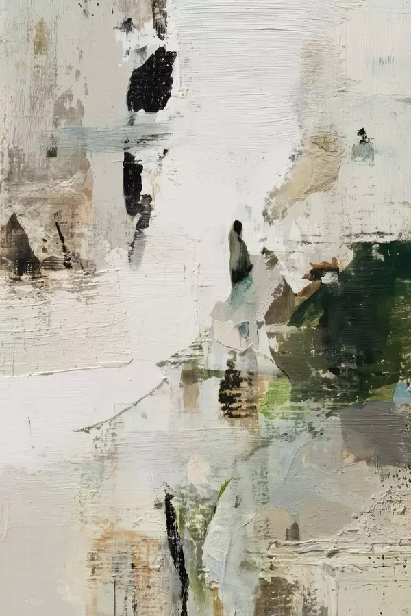 Poster Abstracte compositie in pasteltinten met donkergroene accenten in olieverfstijl f46960