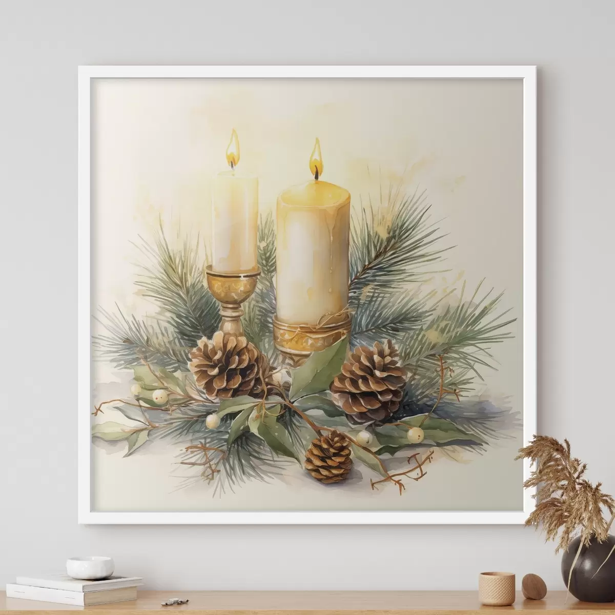 Poster Arrangement, Nieuwjaar, Dennenboom en kaarsen f46971