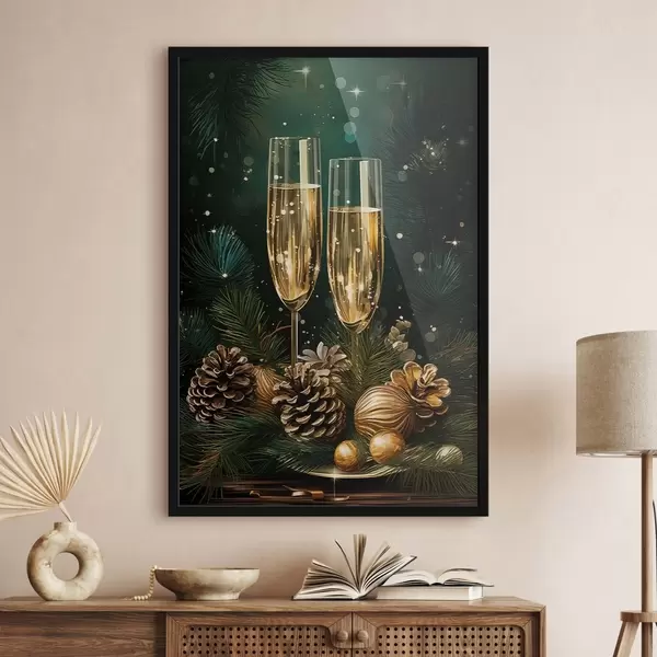 Poster Nieuwjaarscompositie, champagneglazen f46981