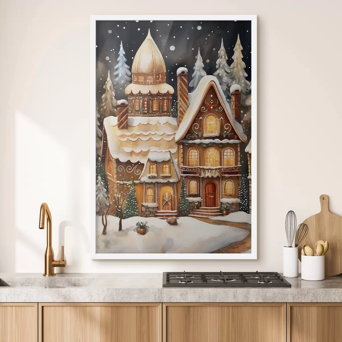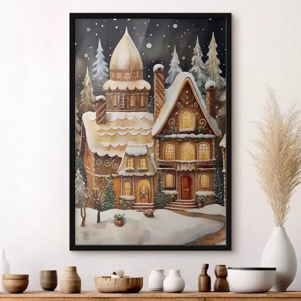 Poster Met sneeuw bedekte huizen in het bos Nr f46985