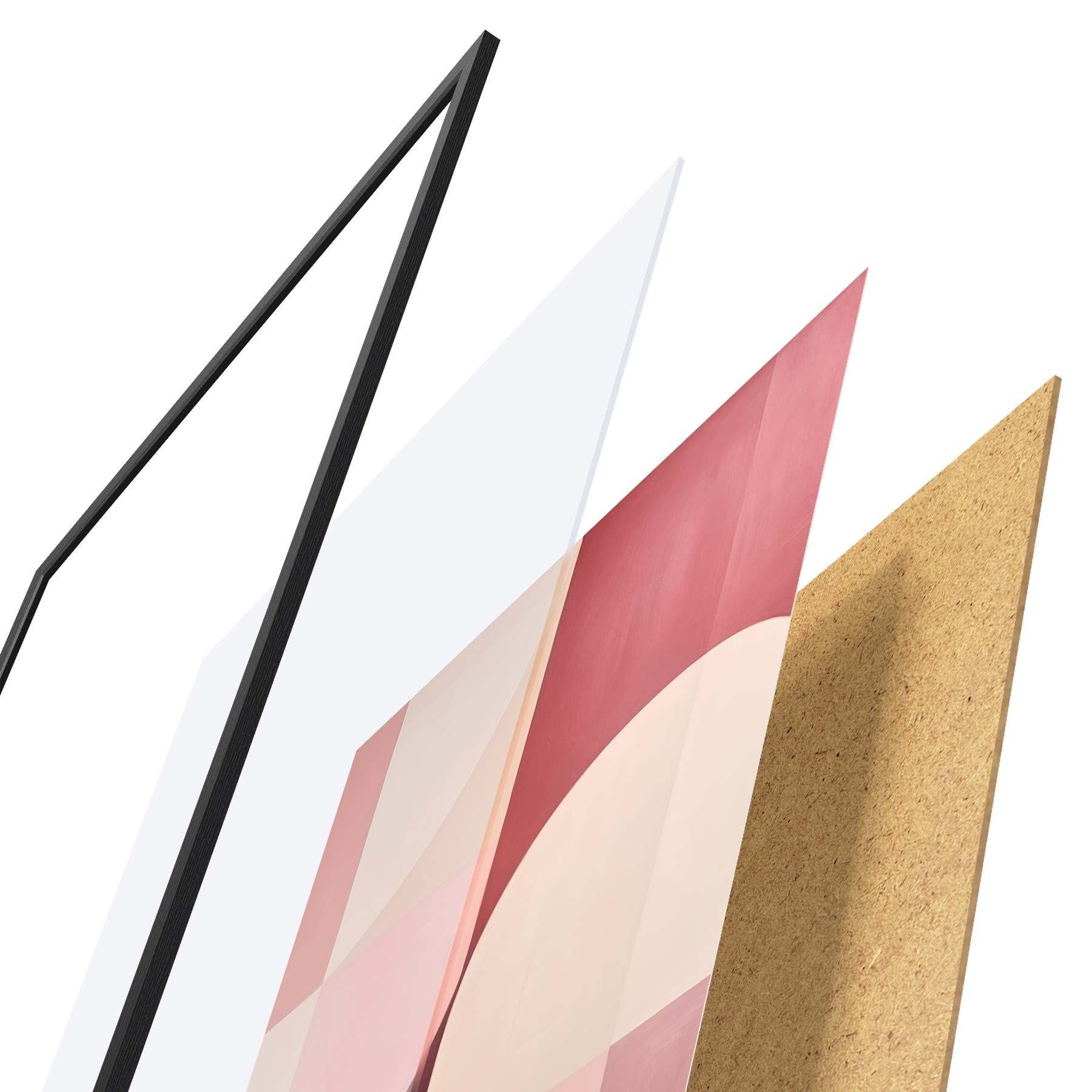 De poster bestaat uit een frame, plexiglas, geprinte afbeelding en spaanplaat achterkant. De poster kan meteen aan de muur worden gehangen dankzij de bevestigingen op de achterkant.