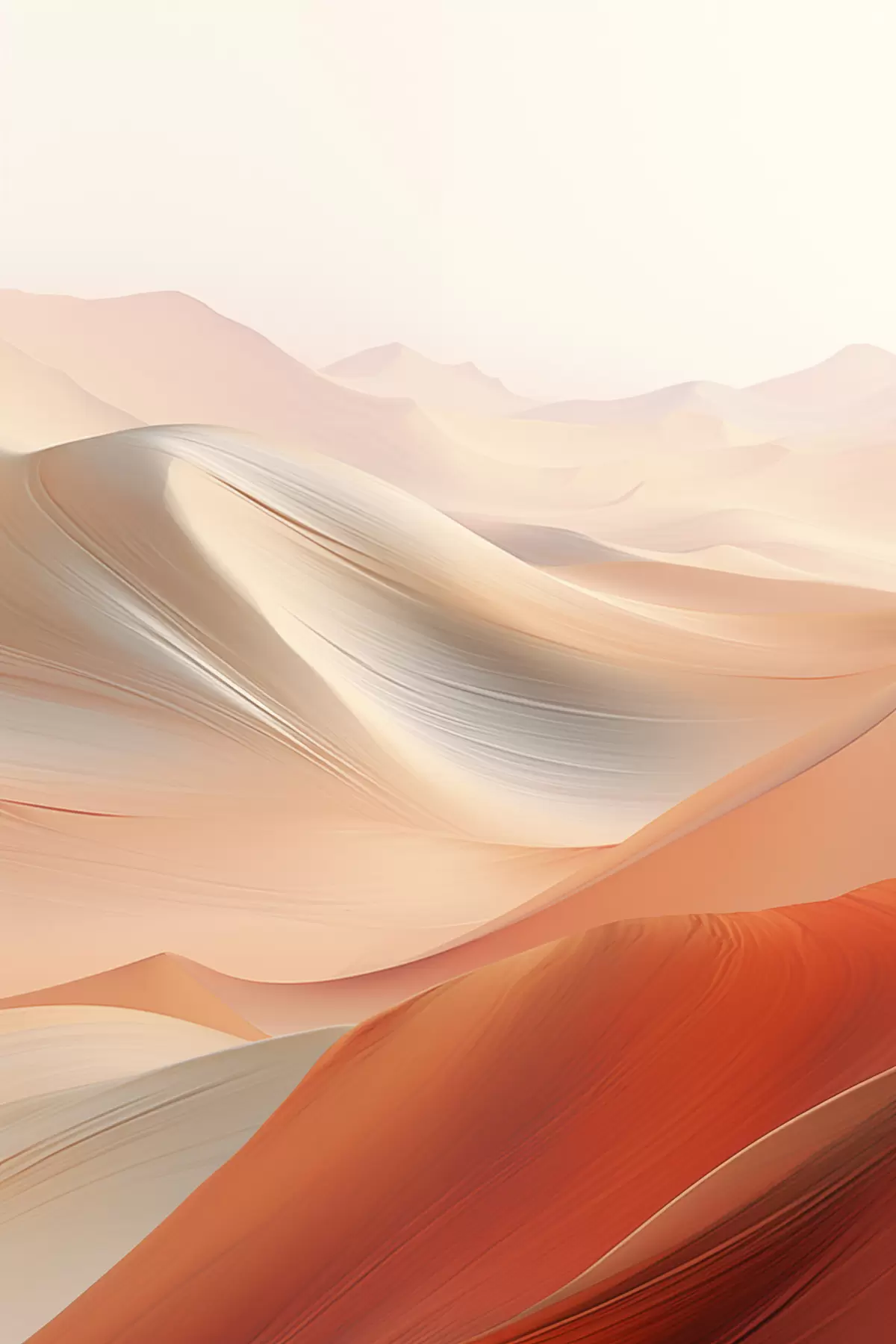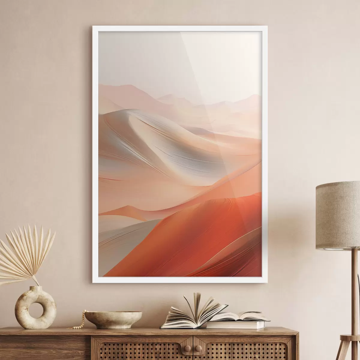 Poster Abstract woestijnlandschap met vloeiende zandduinen in warme oranje en witte tinten Nr f47030
